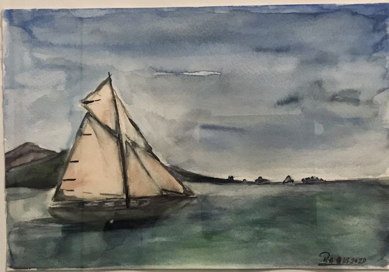 Segler auf der Alster (Hamburg) Zeichnung